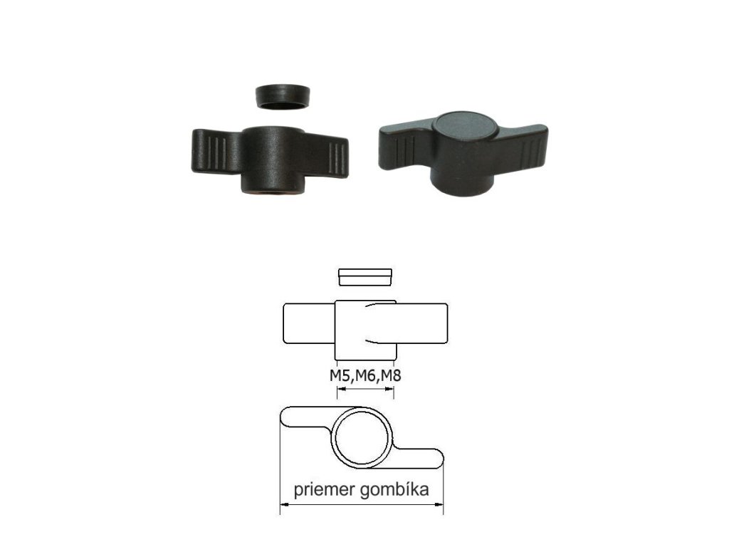 ø-50,M8 Plastová motýľiková matica PA,čierna