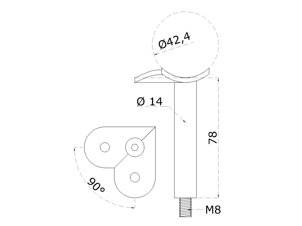 Držiak madla ø 42,4 mm, 90° uhol, M8, brúsená AISI 304