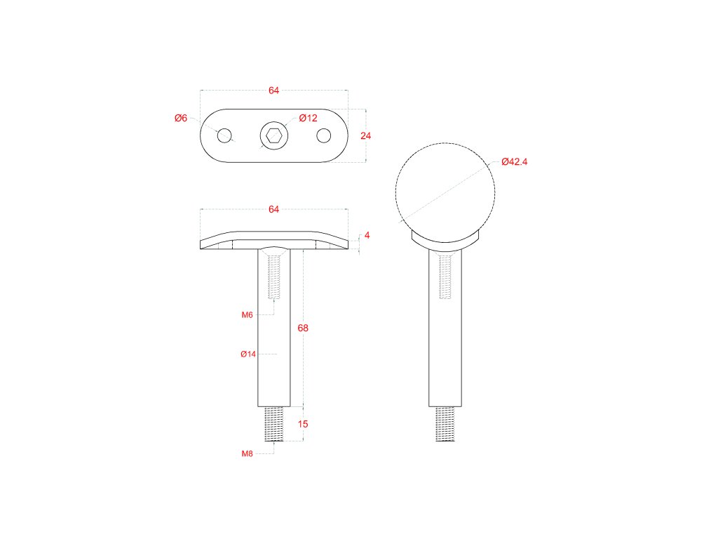Držiak madla ø 42,4 mm, pevný, M8, brúsená AISI 304