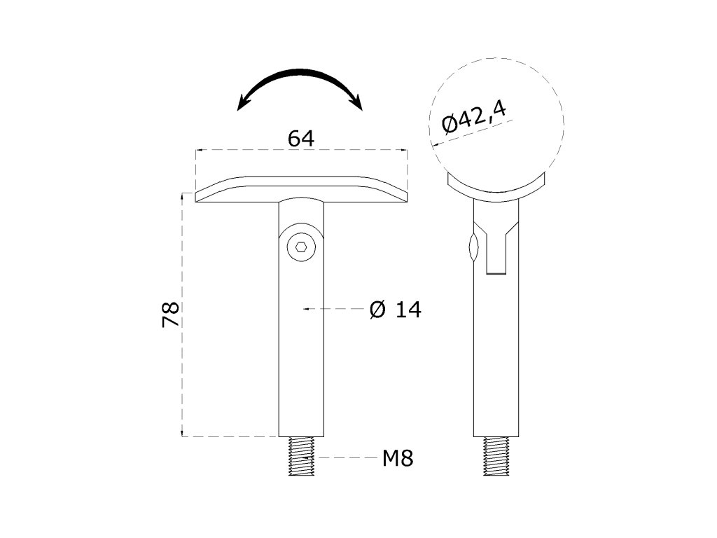Držiak madla ø 42,4 mm s kĺbom, M8, brúsená AISI 304