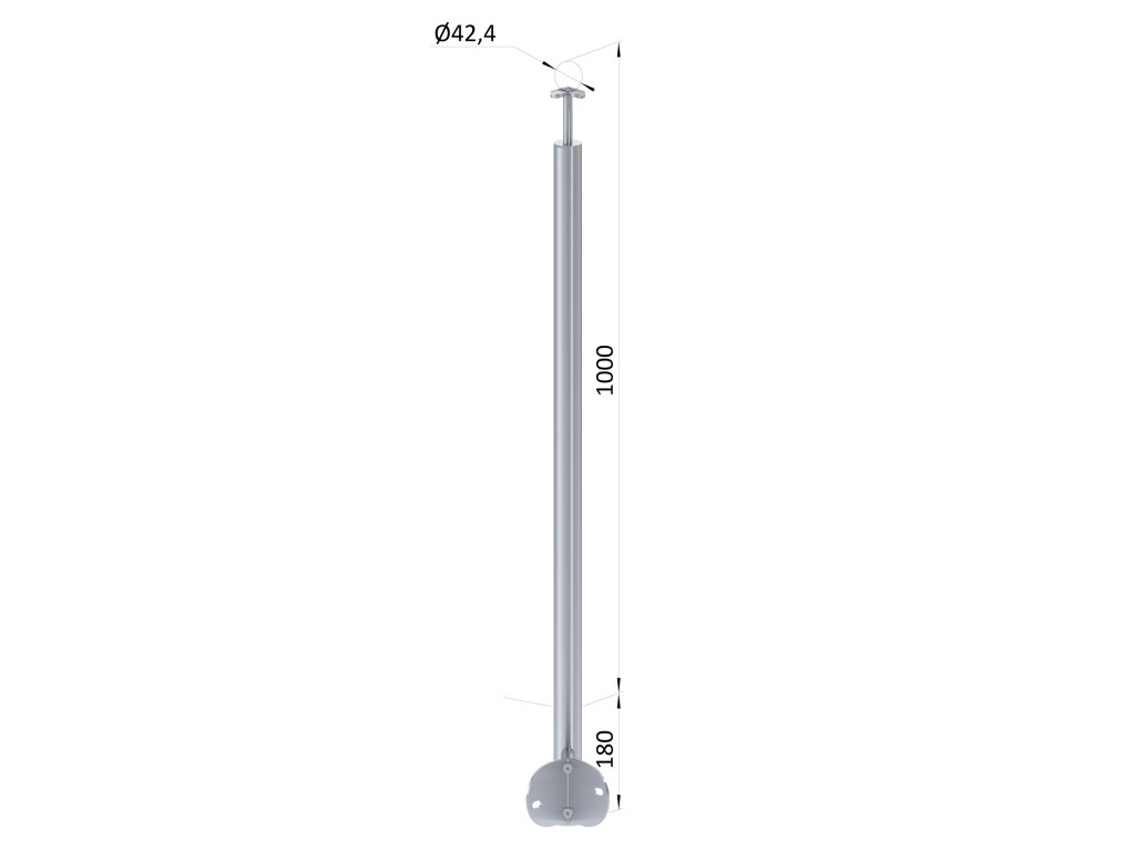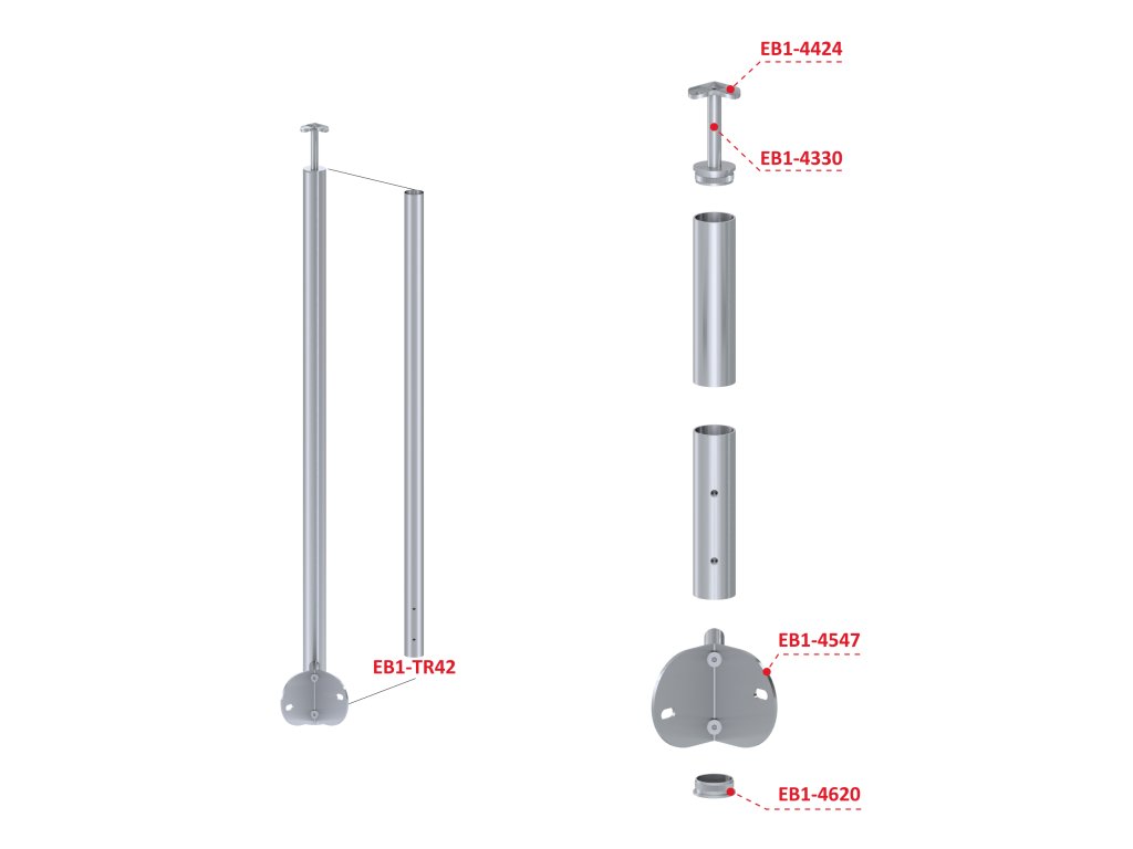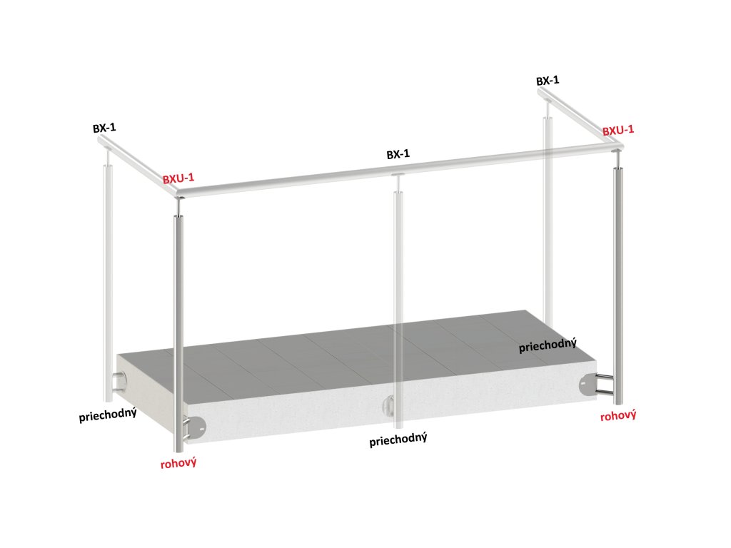 Nerezový stĺp, bočné kotvenie rohové, bez výplne, rohový:90°