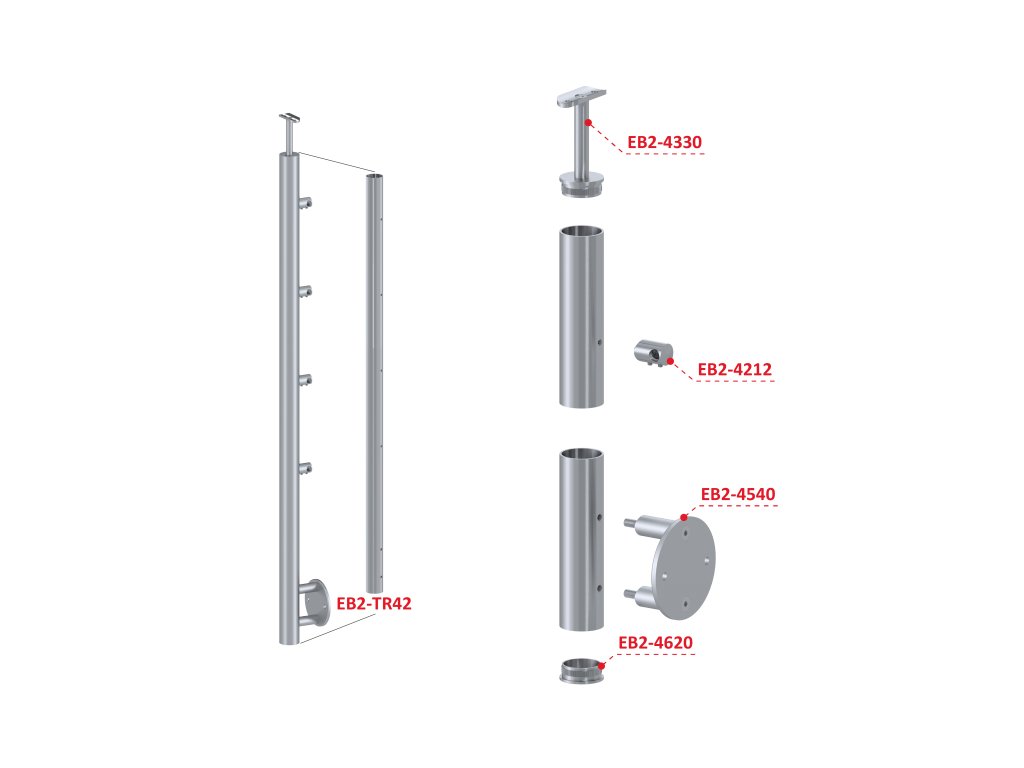Nerezový stĺp, bočné kotvenie, 4-radový priechodný
