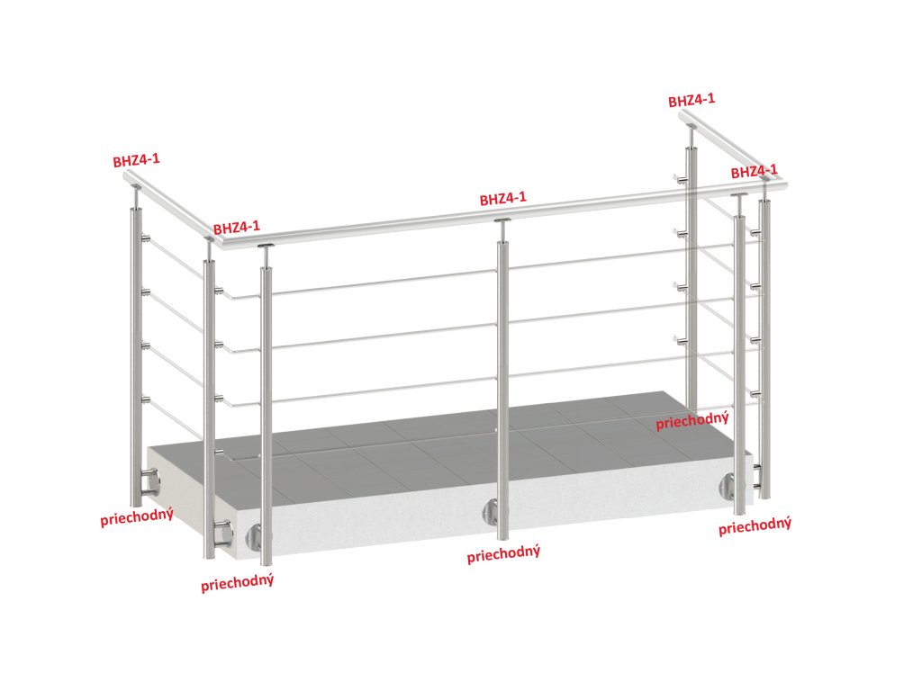 Nerezový stĺp, bočné kotvenie, 4-radový priechodný