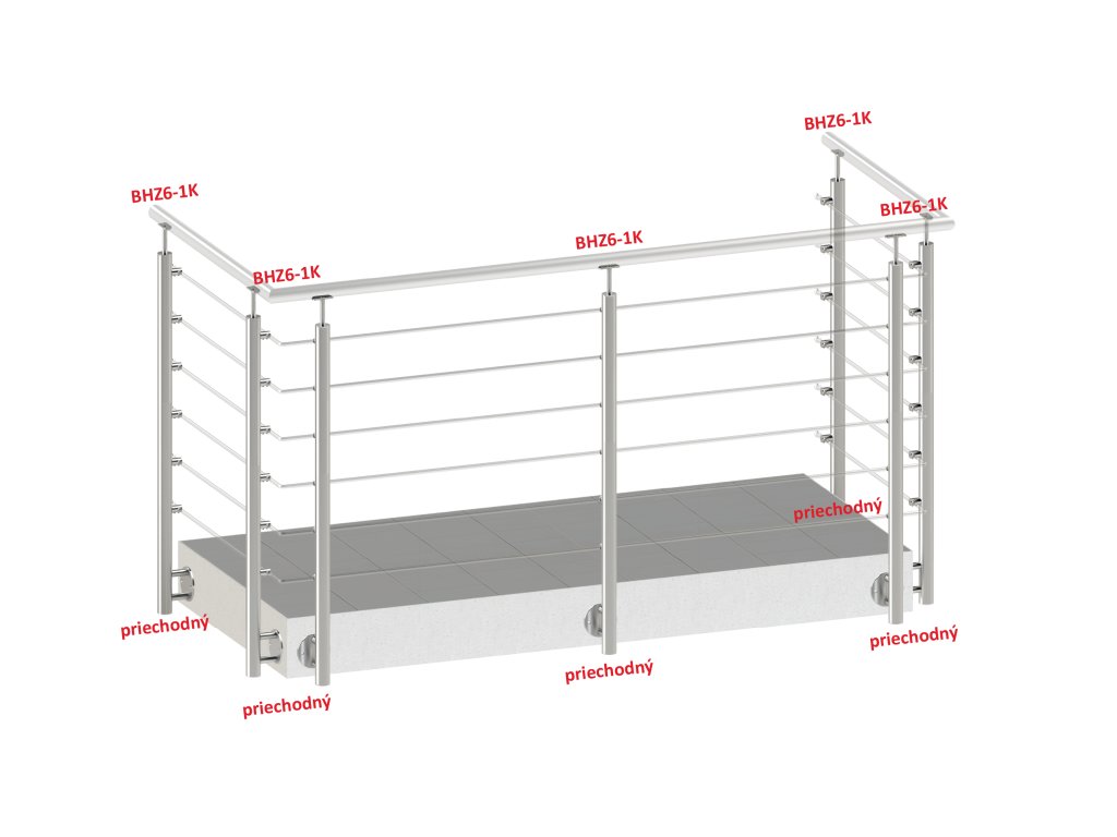 Nerezový stĺp, bočné kotvenie, 6-radový priechodný