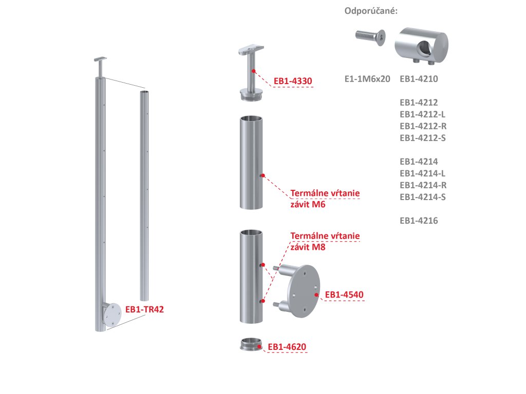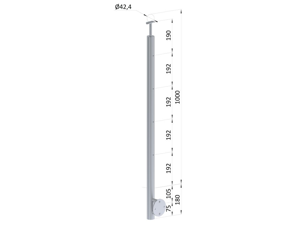 Nerezový stĺp, bočné kotvenie, bez výplne, 4-radový