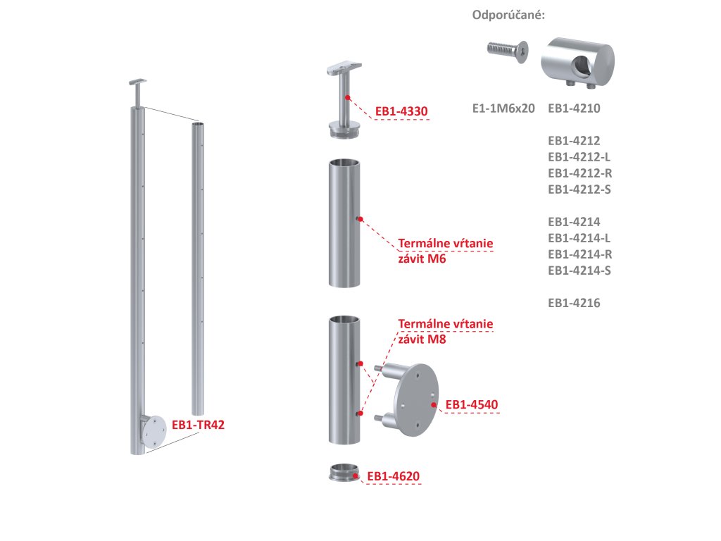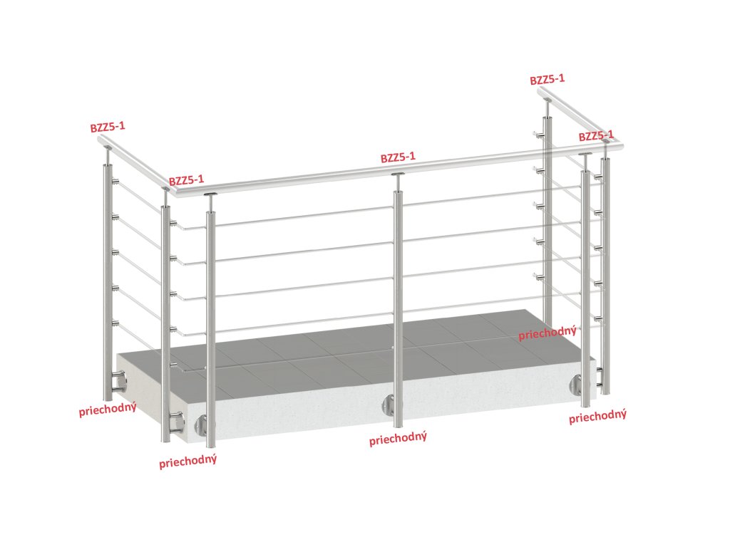 Nerezový stĺp, bočné kotvenie, bez výplne, 5-radový