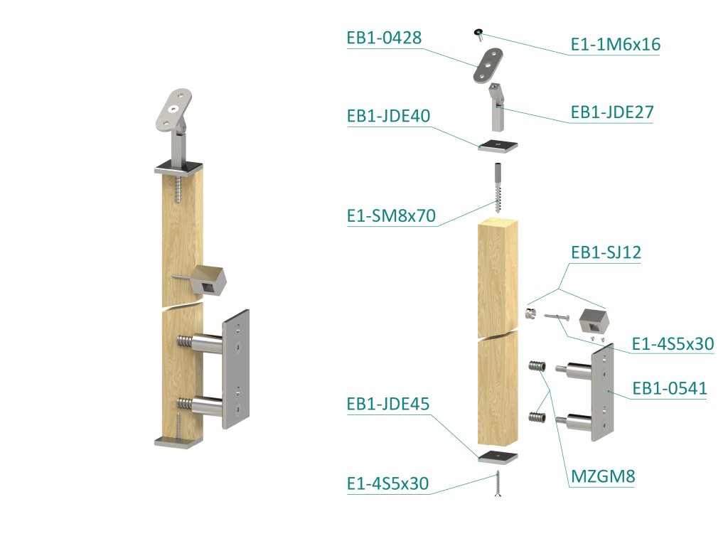 Drevený stĺp, bočné kotvenie, 5-radový, priechodný, vnútorný