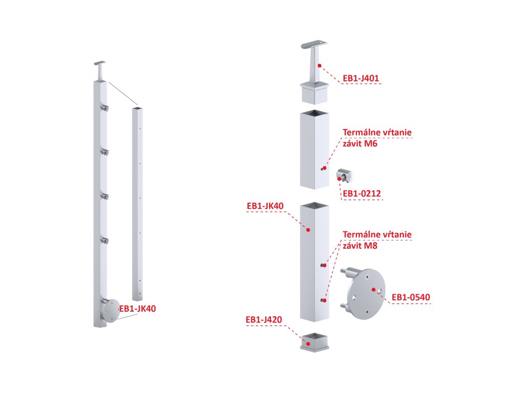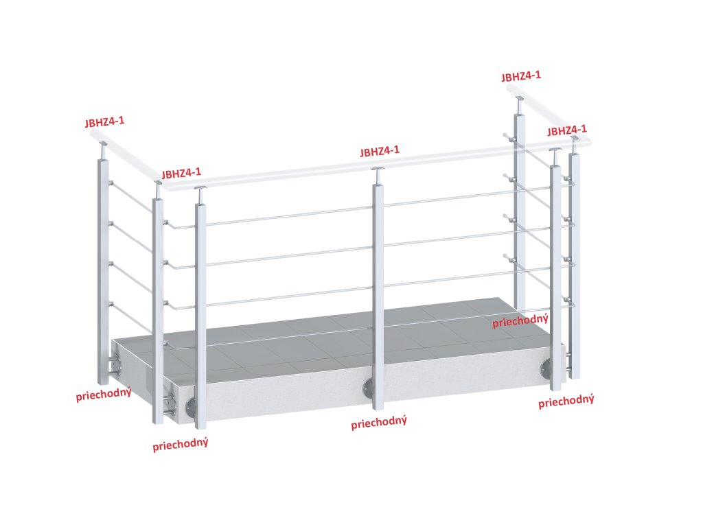 Nerezový stĺp, bočné kotvenie, 4-radový priechodný, vnútorný