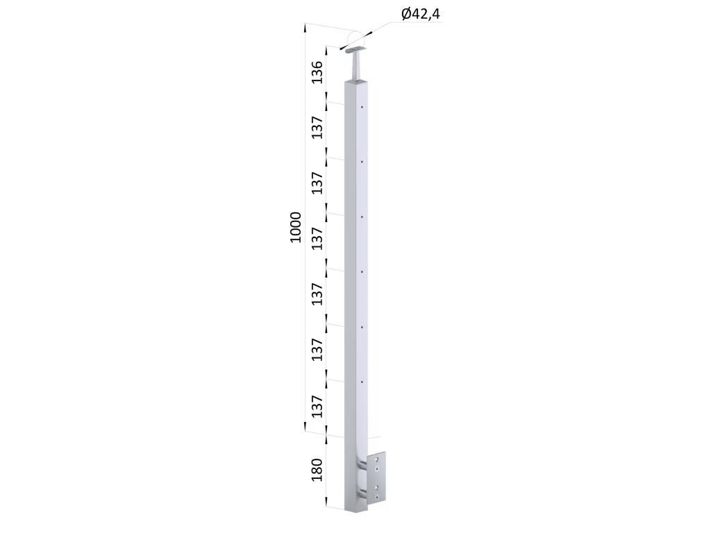 Nerezový stĺp, bočné kotvenie, 6-radový M6, vnútorný