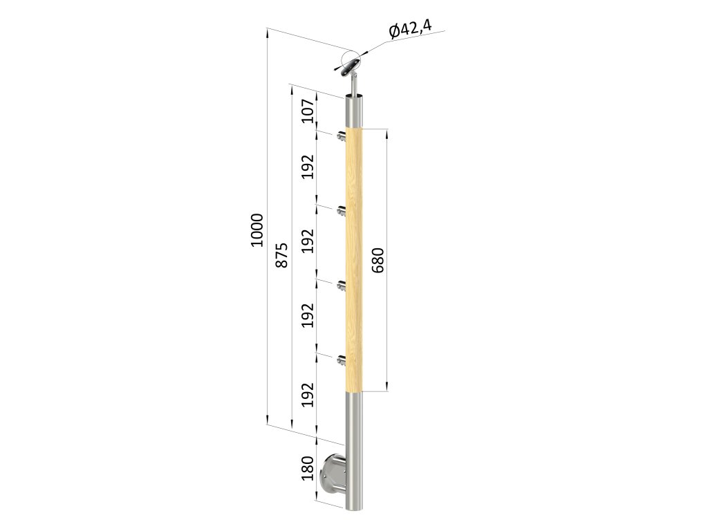 Drevený stĺp, bočné kotvenie, 4-radový, priechodný, vnútorný