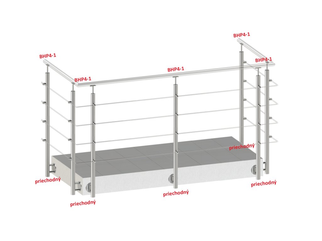 Nerezový stĺp, bočné kotvenie, 4-radový priechodný