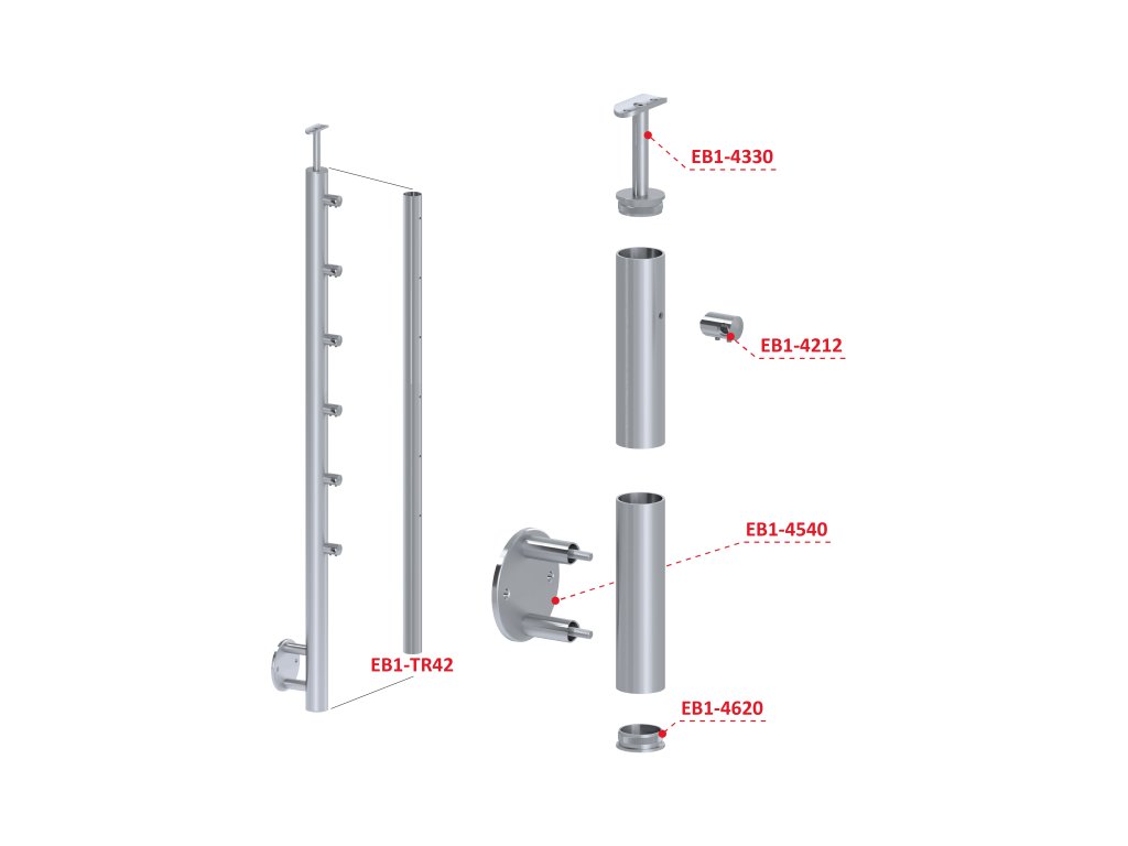 Nerezový stĺp, bočné kotvenie, 6-radový priechodný