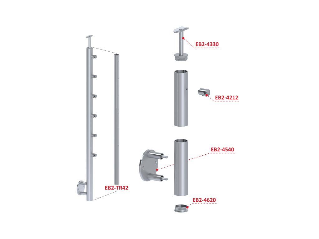 Nerezový stĺp, bočné kotvenie, 6-radový priechodný