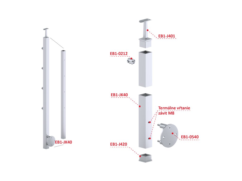Nerezový stĺp, bočné kotvenie, 4-radový priechodný, vonkajší