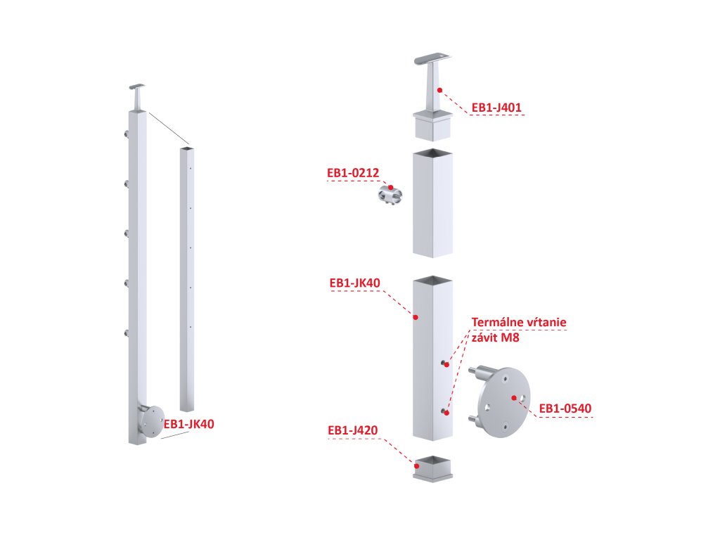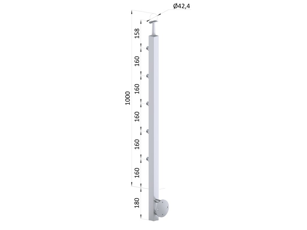 Nerezový stĺp, bočné kotvenie, 5-radový priechodný, vonkajší