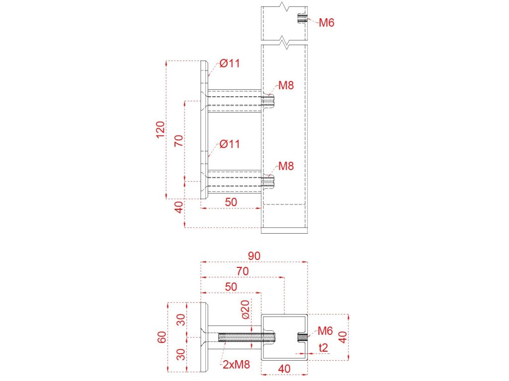 Nerezový stĺp, bočné kotvenie, 6-radový M6, vonkajší
