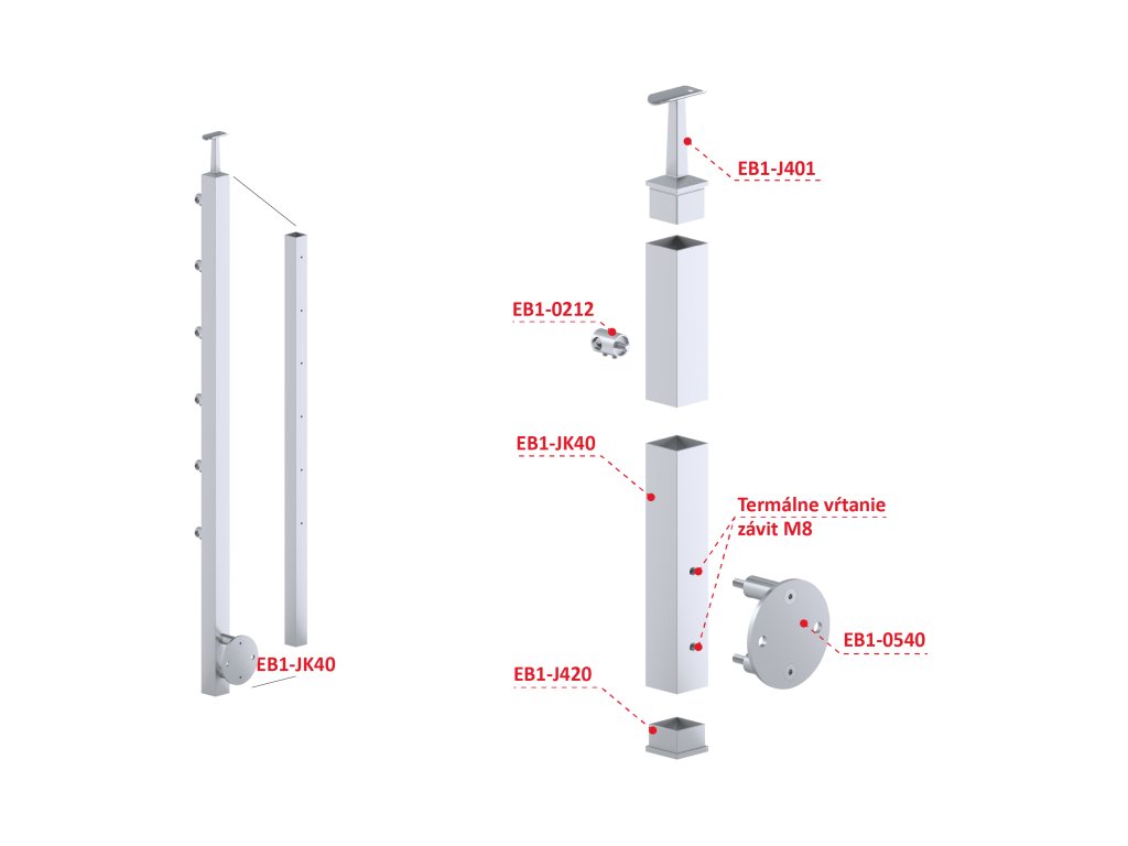 Nerezový stĺp, bočné kotvenie, 6-radový priechodný, vonkajší