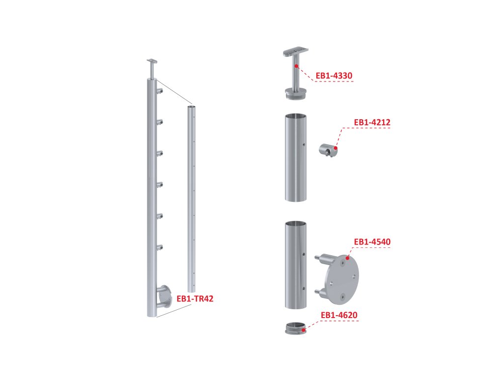 Nerezový stĺp, bočné kotvenie, 6-radový priechodný