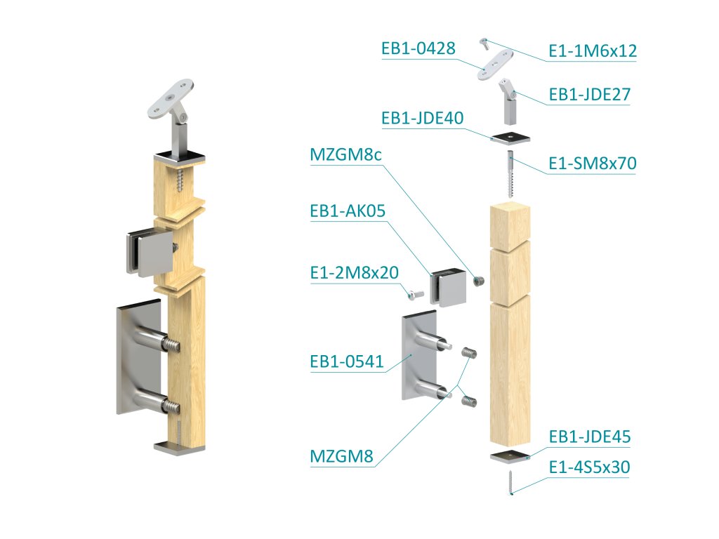 Drevený stĺp, bočné kotvenie, výplň: sklo, koncový, ľavý