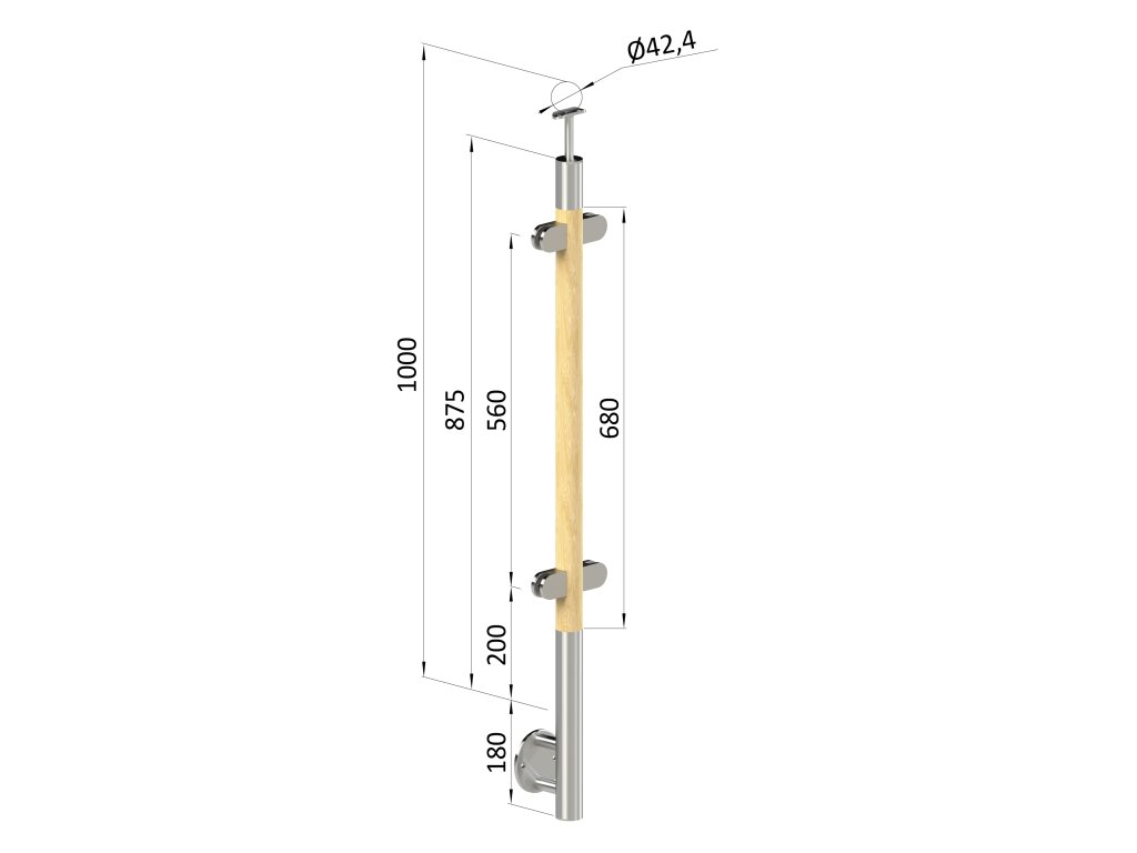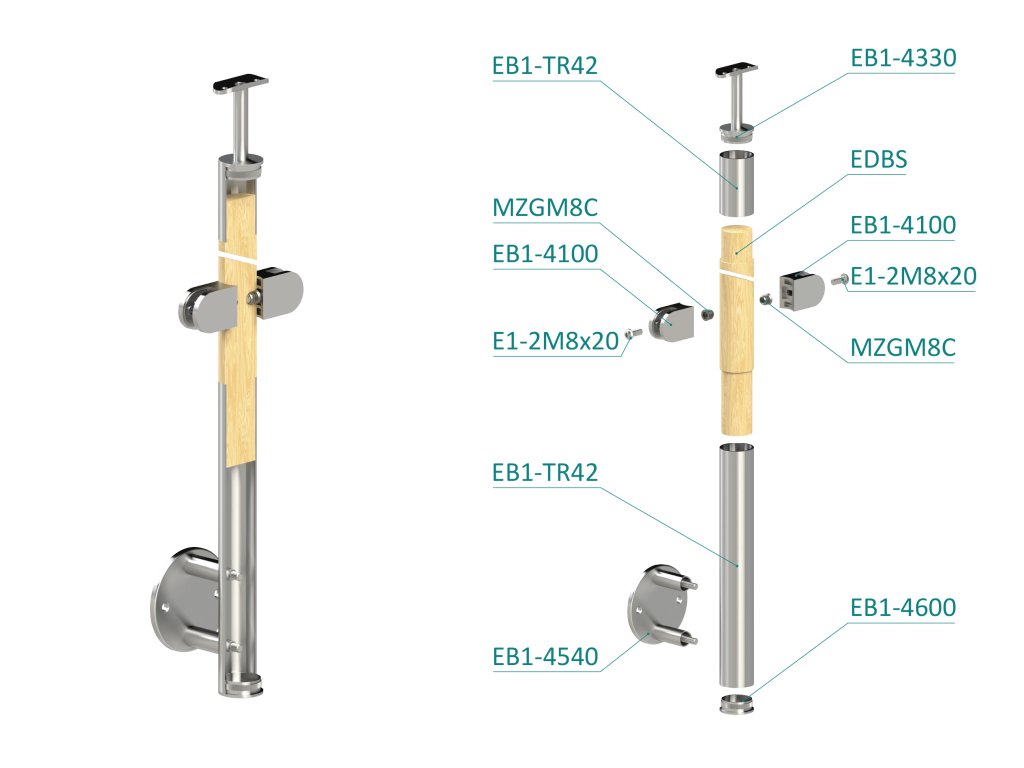 Drevený stĺp, bočné kotvenie, výplň: sklo, priechodný