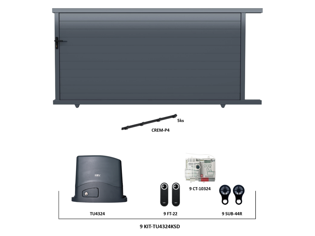 Tento konkrétny produkt ponúkame ako kompletný set vrátane pohonu 9 KIT-TU4324KSD a 5 ks ozubeného hrebeňa CREM-P4 pre automatickú prevádzku brány.