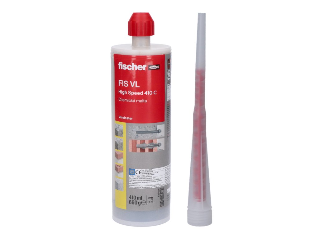 - Kartušu s objemom 410 ml je možné jednoducho spracovávať pomocou vytláčacej pištole fischer FIS AC.