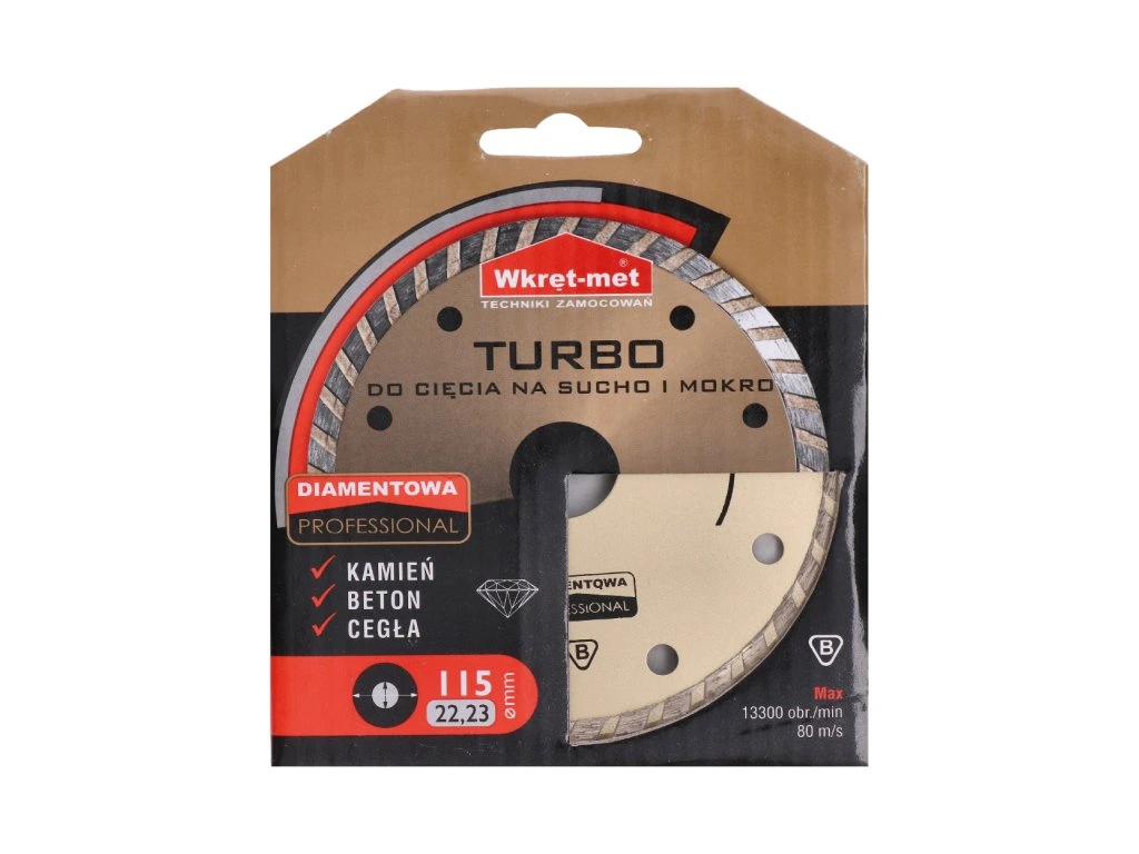 Turbo diamantový kotúč s profesionálnym zrnom na suché alebo mokré rezanie stavebných materiálov vrátane nevystuženého betónu, čerstvého betónu, dutého betónu murovacích prvkov, plnej alebo pórobvitej tehly, slínkovej tehly, prírodného kameňa, keramickej dlažby...