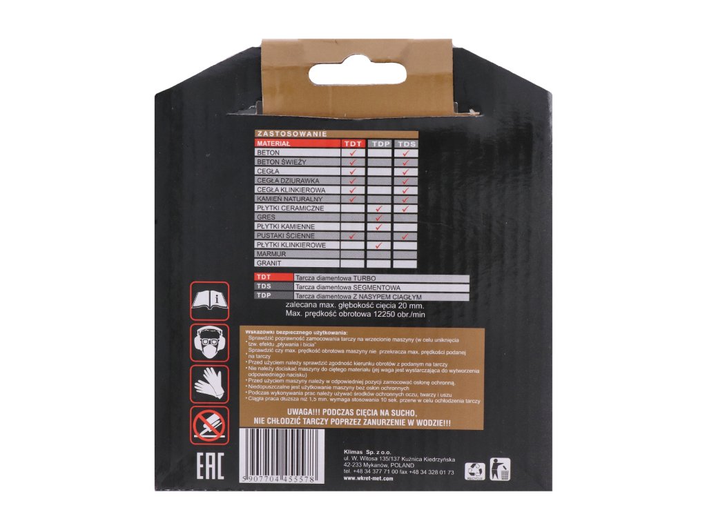 Turbo diamantový kotúč s profesionálnym zrnom na suché alebo mokré rezanie stavebných materiálov vrátane nevystuženého betónu, čerstvého betónu, dutého betónu murovacích prvkov, plnej alebo pórobvitej tehly, slínkovej tehly, prírodného kameňa, keramickej dlažby...