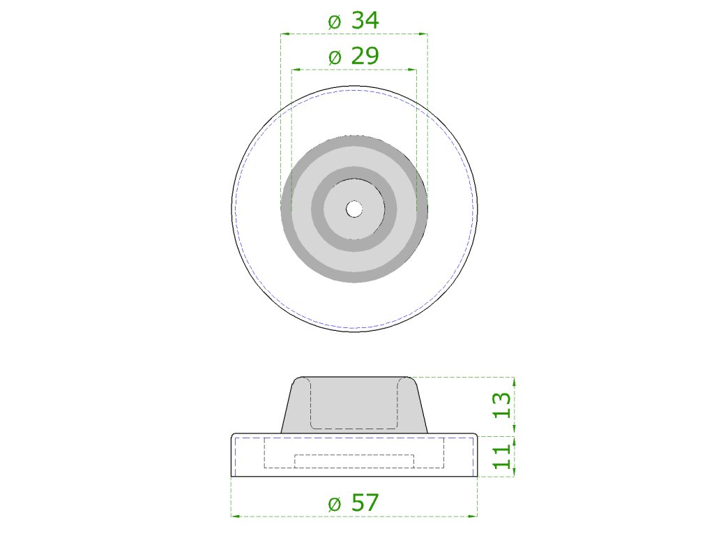 nerezový doraz dverí s gumou (ø 57x24mm), brúsená nerez K320 /AISI304