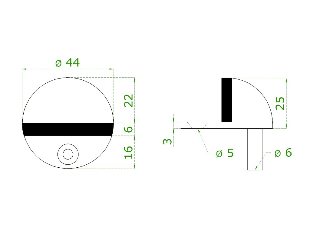 nerezový doraz dverí s gumou (ø 44x25mm), brúsená nerez K320 /AISI304