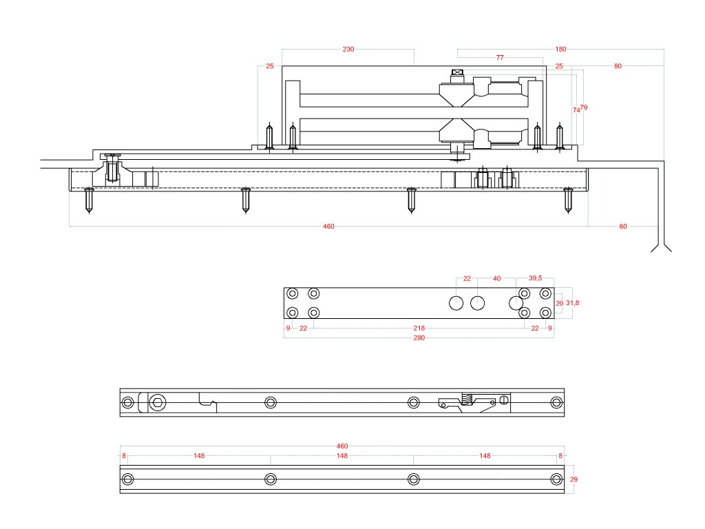 Skrytý hydraulický zatvárač, max. dĺžka dverí: 1200mm /max. váha dverí: 65kg, materiál: Al s povrchovou úpravou - šedá