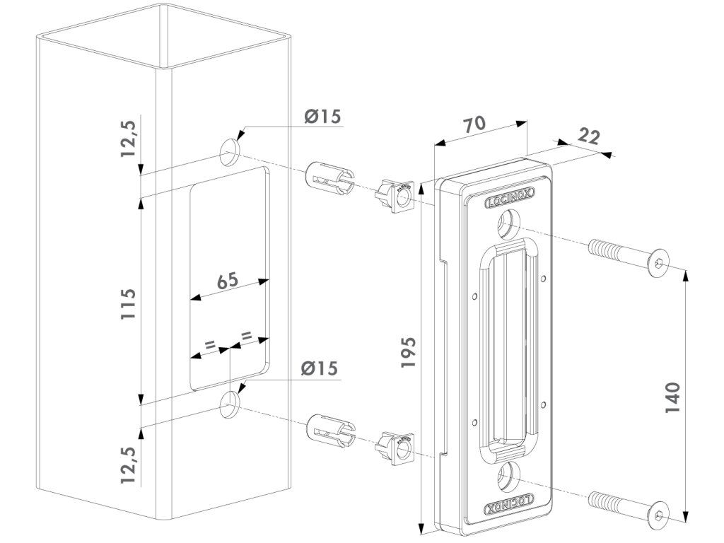 - Posuvný doraz s Quick-Fix – SSKZ QF z nehrdzavejúcej ocele, určený pre duté stĺpiky s minimálnou šírkou profilu 80 mm.