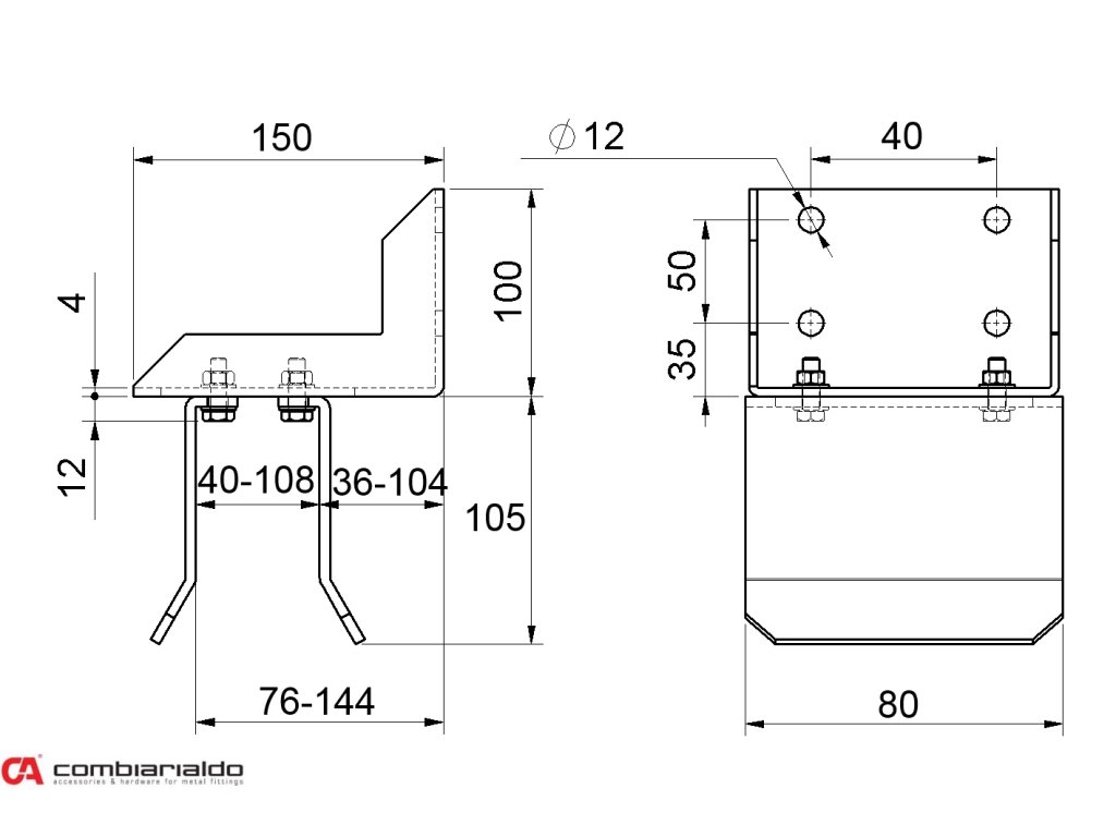 doraz Combi Arialdo na bránu vrchný nadst. 80x150x205x4mm