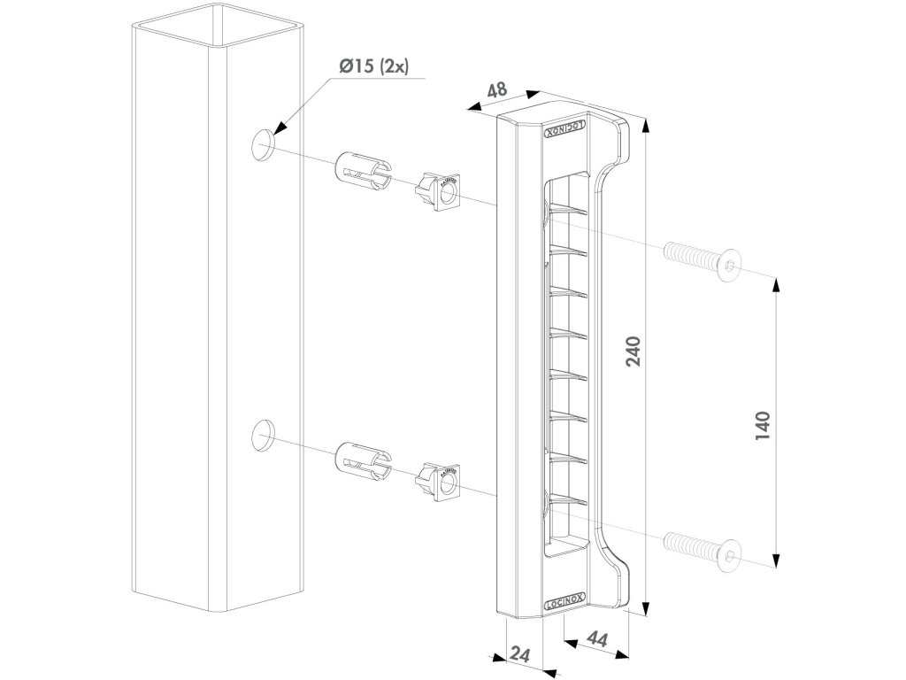 Polyamidový doraz SFKP-QF40 od značky LOCINOX je určený pre záhradné brány. Je kompatibilný so zámkami Fortylock, Fiftylock, Sixtylock a Eightylock. Systém Quick-Fix zaisťuje rýchlu a pevnú montáž na štvorcové stĺpiky s profilom 40x40|60x60mm. Štandardná vzdialenosť medzi upevňovacími bodmi je 140 mm. Doraz je vhodný pre štvorcové profily a umožňuje jednoduchú výmenu medzi ľavou a pravou stranou.