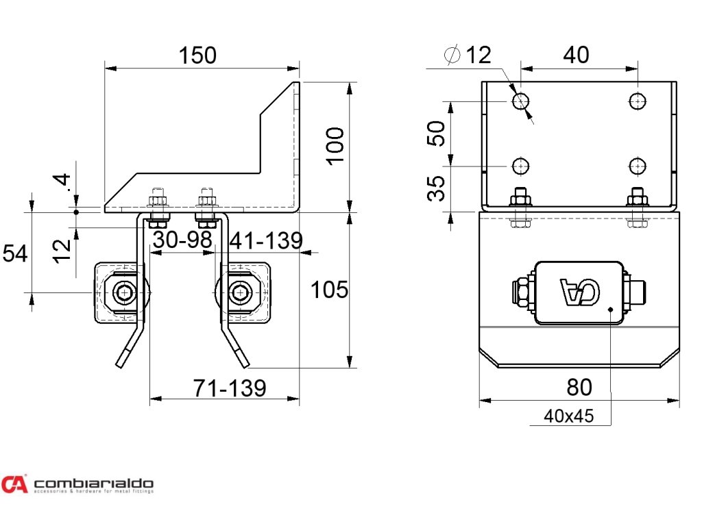 PICCOLO horný doraz Combi Arialdo s 2 nylonovými kolieskami 40x45mm