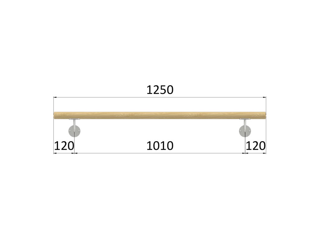 madlo drevené (1250mm), materiál: buk, brúsený povrch s náterom BORI (bezfarebný), set: 2 ks úchyt, madlo s ukončením