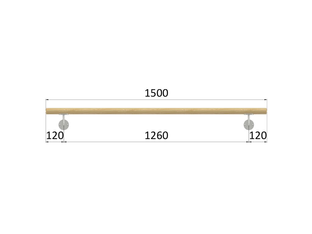 madlo drevené (1500mm), materiál: buk, brúsený povrch s náterom BORI (bezfarebný), set: 2 ks úchyt, madlo s ukončením