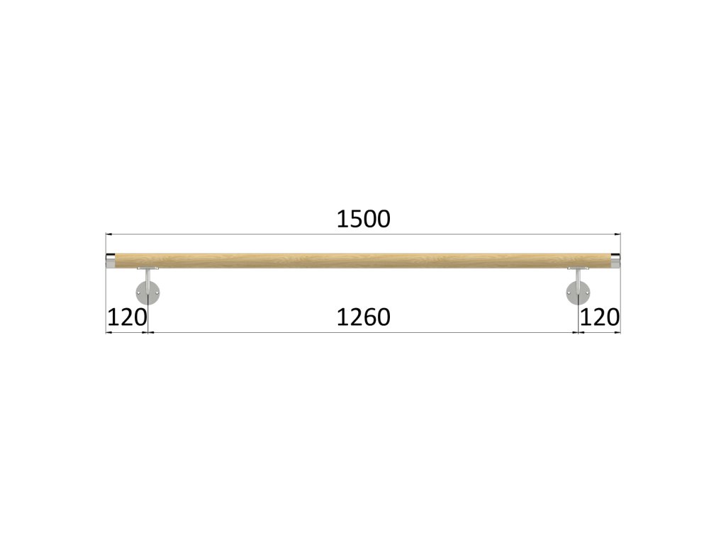 madlo drevené (1500mm), materiál: buk, brúsený povrch bez náteru, set: 2 ks úchyt, madlo s nerezovým ukončením