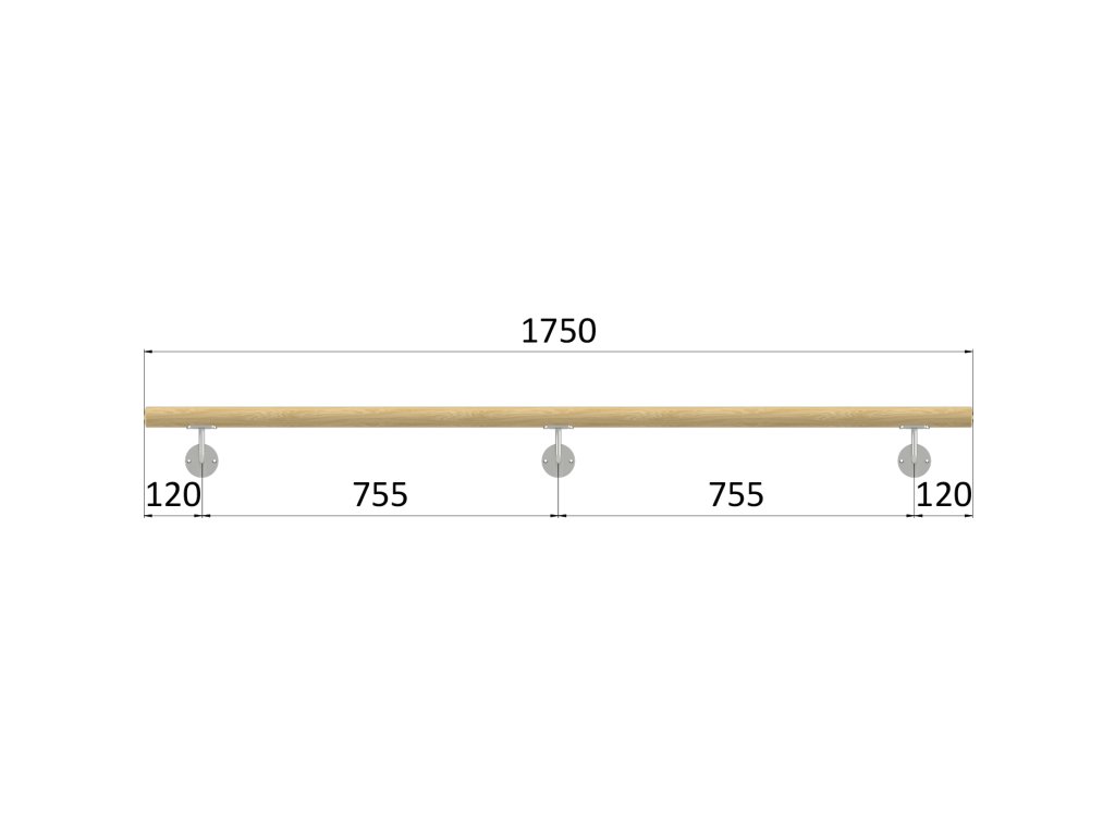 madlo drevené (1750mm), materiál: buk, brúsený povrch bez náteru, set: 3 ks úchyt, madlo s ukončením