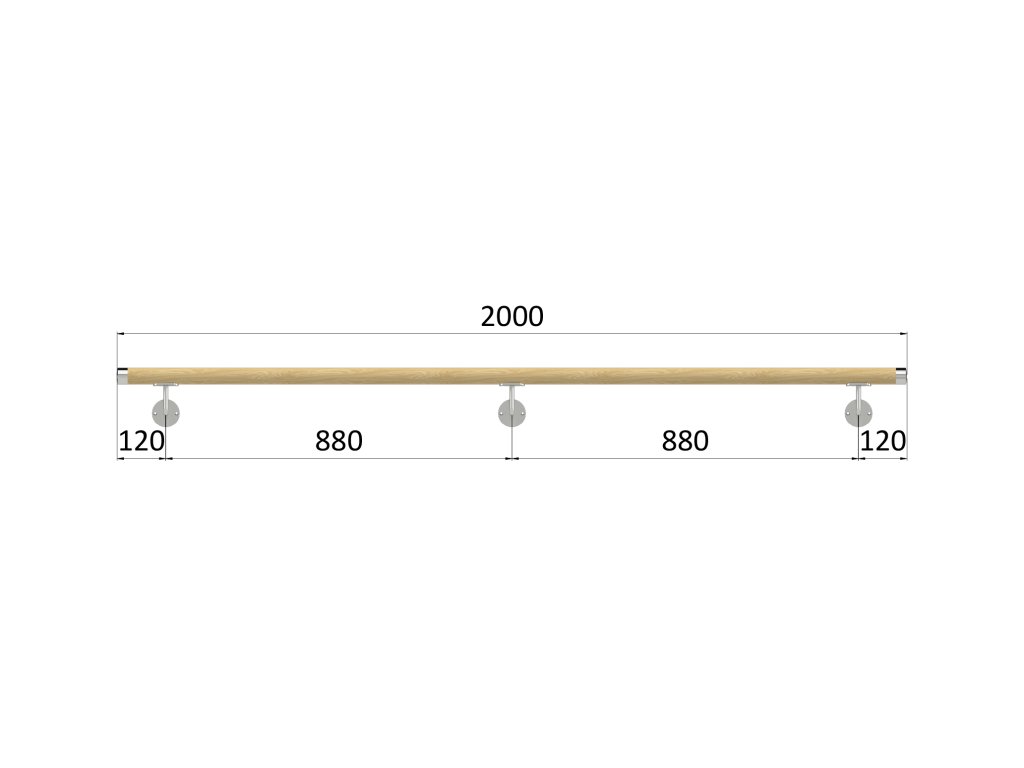 madlo drevené (2000mm), materiál: buk, brúsený povrch s náterom BORI (bezfarebný), set: 3 ks úchyt, madlo s nerezovým ukončením