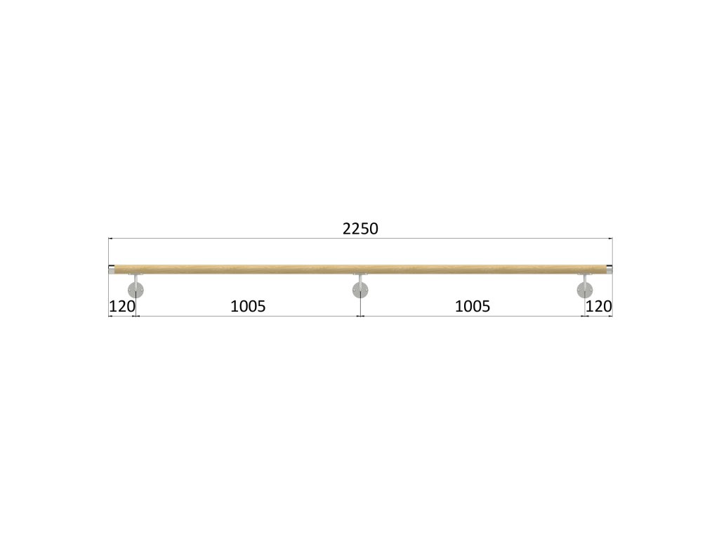 madlo drevené (2250mm), materiál: buk, brúsený povrch bez náteru, set: 3 ks úchyt, madlo s nerezovým ukončením