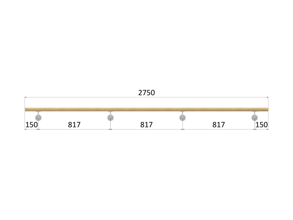madlo drevené (2750mm), materiál: buk, brúsený povrch bez náteru, set: 4 ks úchyt, madlo s ukončením