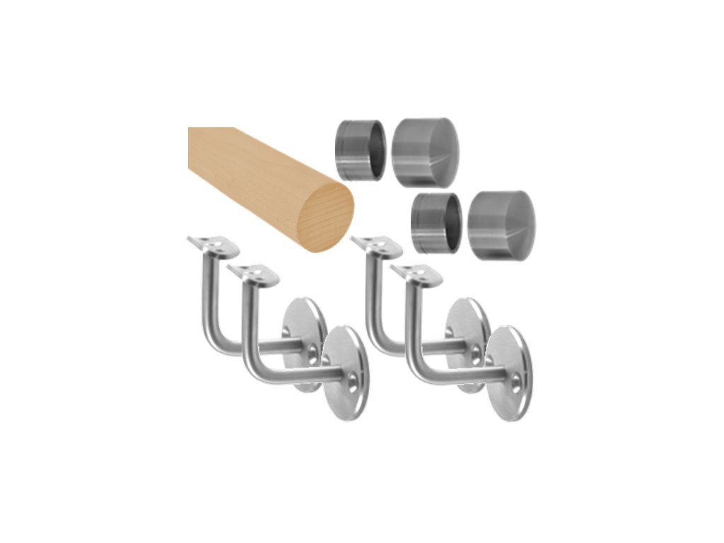 madlo drevené (3000mm), materiál: buk, brúsený povrch s náterom BORI (bezfarebný), set: 4 ks úchyt, madlo s nerezovým ukončením