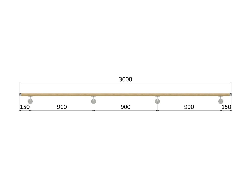 madlo drevené (3000mm), materiál: buk, brúsený povrch bez náteru, set: 4 ks úchyt, madlo s nerezovým ukončením