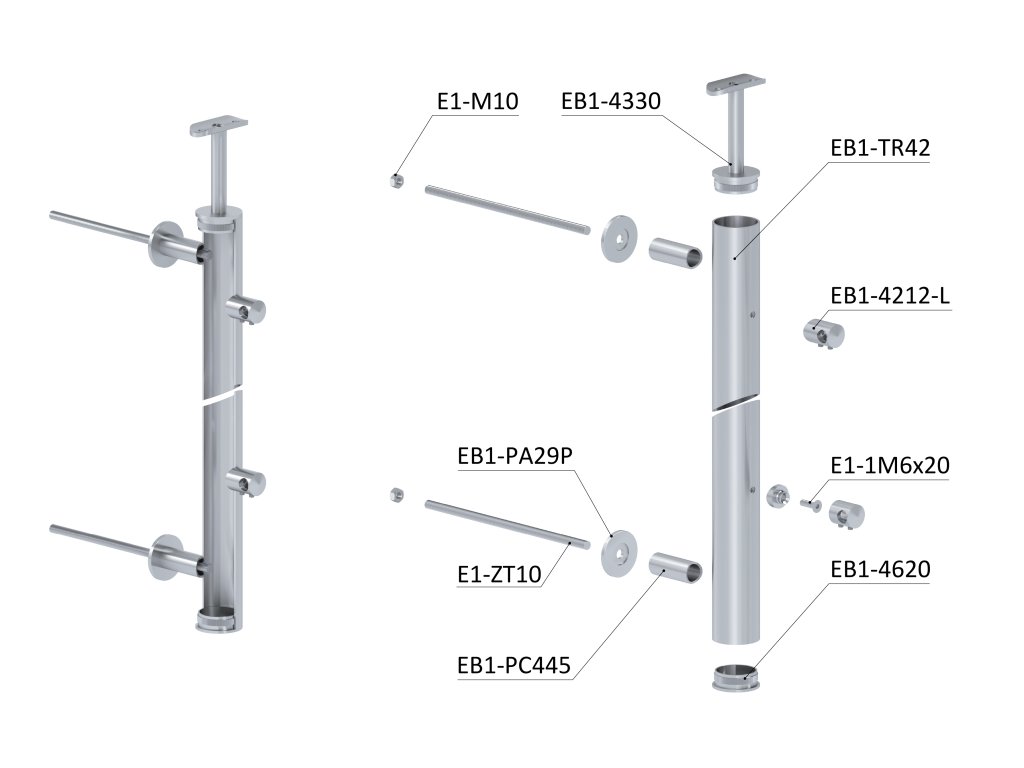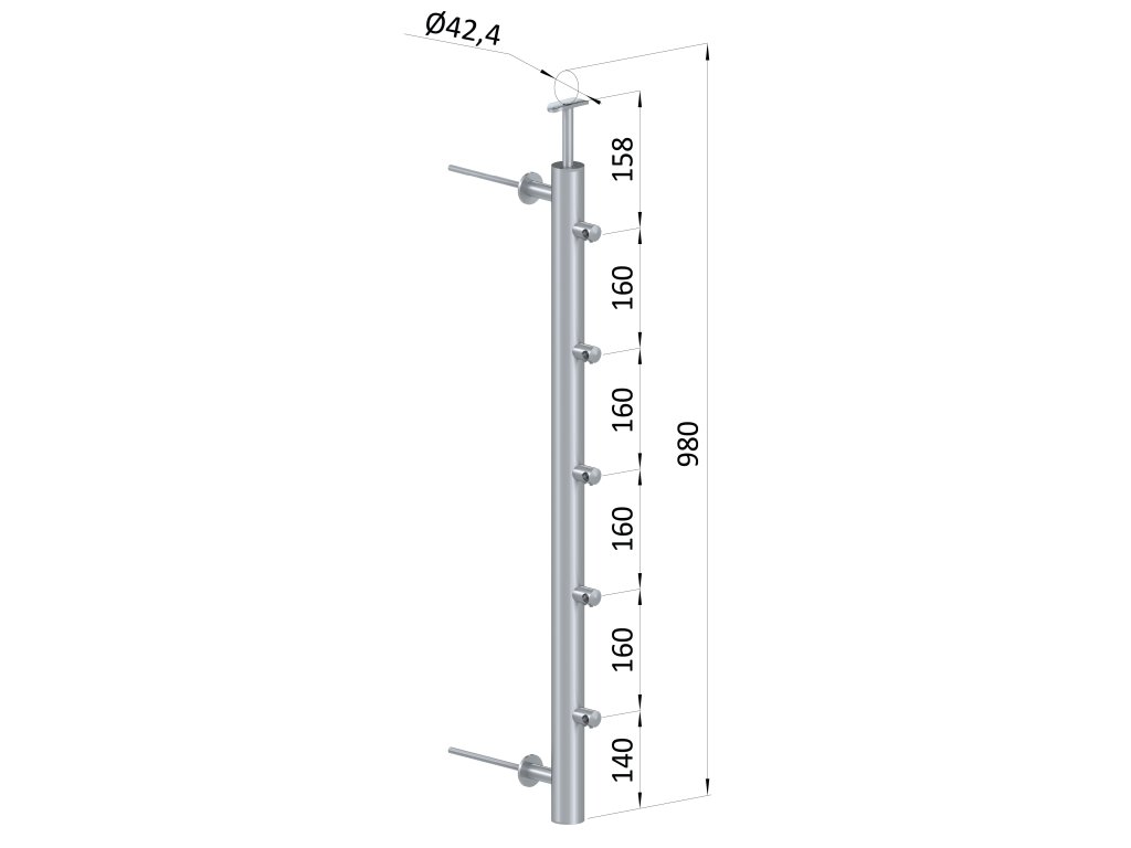 Nerezový stĺp, fr. balkón, bočné kotvenie, 5-radový ľavý