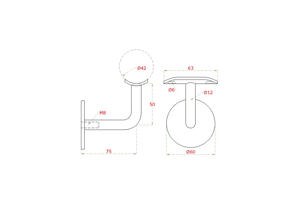 Držiak madla na stenu, odsadenie 75 mm, bez úpravy