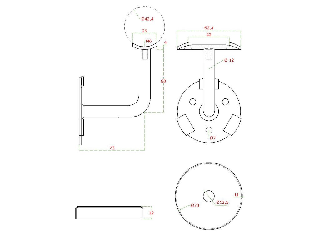 Držiak madla na stenu s krytkou, odsadenie 73 mm, bez úpravy