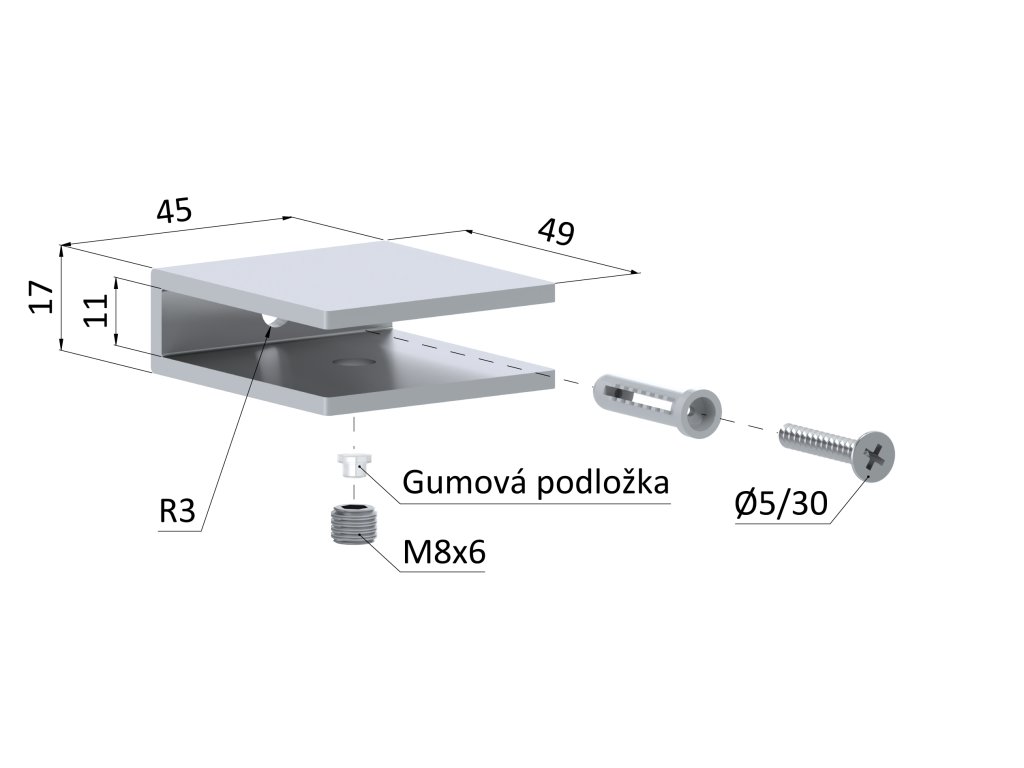 Držiak police pre sklo 8 - 10 mm, brúsená nerez AISI 304
