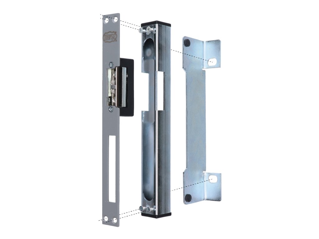 set - dorazová kazeta pravá/lavá EZK310 (260x30x30 mm) + elektrický zámok EZ332 s lištou