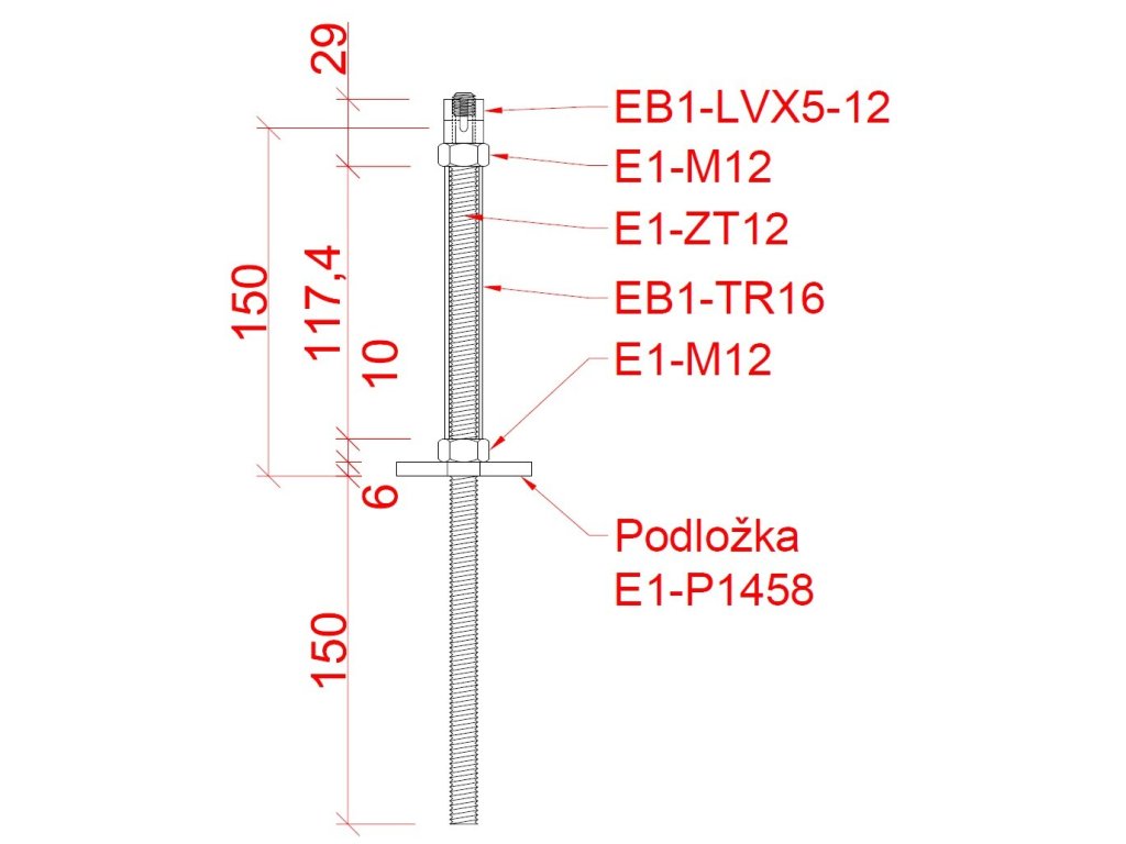 Príruba (stredová) na fasádnu lankovú stenu, AISI 304